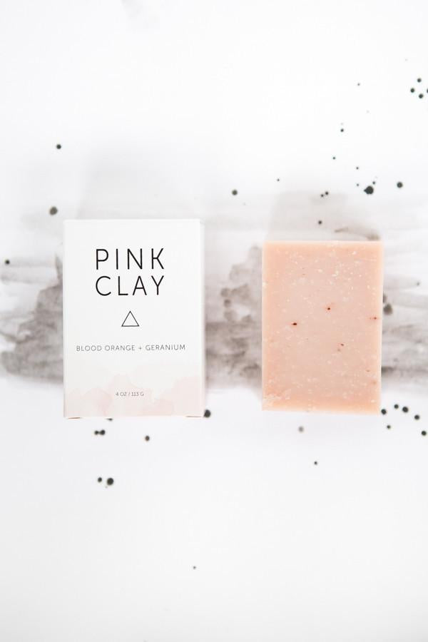 Pink Clay Soap. Blood Orange + Geranium. 100% Natural. Scented with essential oils. This soap is refreshing, citrus/floral, and smells delicious. It has a silky smooth texture. French Pink Clay is a very gentle clay known for drawing out impurities without drying your skin.