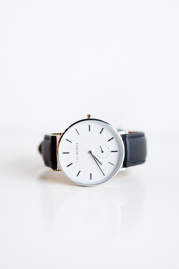 The Horse Classic Leather Watch - White Face, Leather Black Band